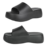 Platform Slides for Women, Black Platform Sandals Women Comfortable, Cute Flatform Beach Sandals, Slip on Summer Cloud Vacation Shoes for 2025, Size 8