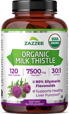 USDA Organic Milk Thistle 7500 mg Strength 120 Vegan Caps 80% Silymarin, Kosher
