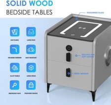 Bluetooth Nightstand Fingerprint Locking Drawer Wireless Charging 3 Color LED