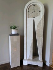 Cream Tessellated stand up Stone Grandfather Floor Clock & Plant Stand modern