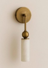 Alabaster Wall Sconce with Brass Accents - Stylish Mid Century Bathroom Light