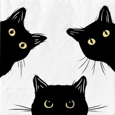 (2) Two Paper Lunch Napkins for Decoupage/Mixed Media - Black Cat Heads