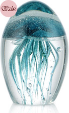 Hand Blown Glass Jellyfish Figurine Glow in Dark Paperweight Decor Gift