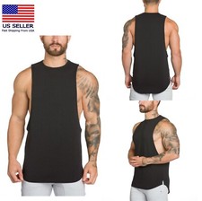 Men's Sleeveless T-Shirt Cotton Muscle Tank Top Solid Blank Workout Summer Gym